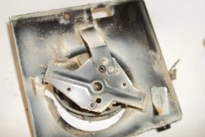 (Step 3) is to set aside the vent cover and locate the exhaust fan blade. Detach any additional screws that might be holding the actual fan in place and then slide the fan blade assembly out.