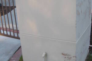 Stucco removed to access piping